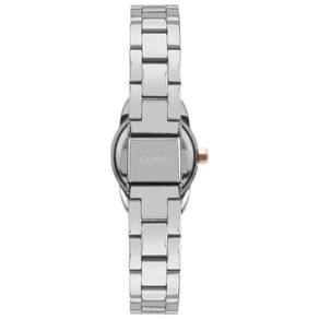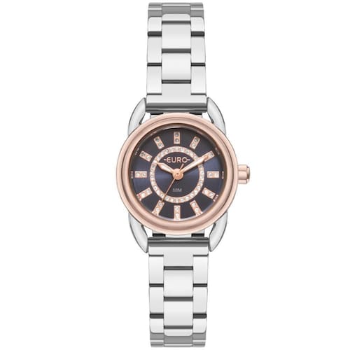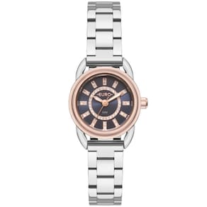 Relógio Euro Feminino Ref: Eu2036yvh/4a Casual Bicolor DESCRIÇÃO DO PRODUTO: Caixa de Metal Pulseira de Aço Vidro de Cristal Mineral Fundo Pressão Resistente à Água Até 5 Atm Diâmetro / Largura da Caixa: 24.00 MM Funções: Analógico Mostrador Azul com pedras Alimentação do Maquinário: Bateria Maquina Japonesa Prateado com Rosé de 1 Ano