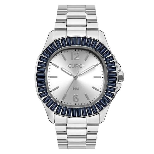 Somente disponível a cor PRATA Relógio Euro Feminino Stones Prata - EU2035YXC/4K Tem novidade na coleção Stones Além de pedras azuis baquete no aro, os modelos trazem uma caixa em uma nova versão com formato diferenciado com combinações de banho prata com mostrador prata. Cor da caixa: Prata Material da caixa: Aço Formato da caixa: Redondo Material da pulseira: Aço : 12 meses Cor do mostrador: Prata Cor da pulseira: Prata Largura da caixa cm : 4,1 Resistente a água: 5 ATM Descrição da resistência: A resistência deste produto permite apenas respingos de água ao lavar as mãos. Não utilizar este produto em qualquer situação que haja contato direto com água.