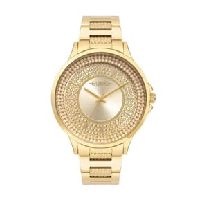 Relógio Euro Stones Dourado Feminino EU2035YTV/K4DNa Elister, a qualidade é uma prioridade em todos os nossos produtos e serviços. Nós nos esforçamos para oferecer aos nossos clientes uma ampla variedade de acessórios, incluindo relógios e óculos de sol, com as melhores marcas e estilos. Além disso, a nossa equipe é treinada para oferecer um atendimento excepcional, garantindo que cada cliente seja tratado com o respeito e a atenção que merece.ESPECIFICAÇÕES TÉCNICAS-Marca: Euro -Linha: Stones -Gênero: Feminino -Tipo de mostrador: Analógico -Tipo de movimento: Quartz-Tipo de fecho: Trava -Cor da caixa: Dourado-Cor do mostrador: Dourado com pedraria-Cor da pulseira: Dourado-Material da caixa: Metal -Material da pulseira: Aço -Largura da caixa: 4,4 cm-Resistência à água: 5 ATM 50 m -: 12 meses Marca: Não Informado