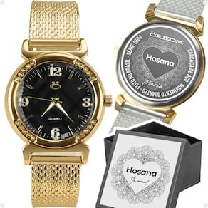 Relogio feminino aço dourado banhado silicone inox moda Eleve seu estilo com o Relógio Feminino Orizom Maria, uma fusão perfeita de luxo e personalidade. Este relógio exclusivo apresenta um design de dourado banhado com um fundo preto, emanando sofisticação e elegância. Seu maquinário em aço inoxidável garante precisão e durabilidade, enquanto a pulseira em silicone ajustável oferece conforto incomparável, adaptando-se a todos os tamanhos de pulso com facilidade. Além disso, vem acompanhado de uma elegante caixa premium Orizom Maria, proporcionando segurança e estilo ao guardar o relógio.