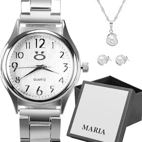 Relogio feminino aço inox prata + caixa + colar brincos Kit de Acessórios em Aço Inoxidável com Toque Personalizado: Eleve seu Estilo