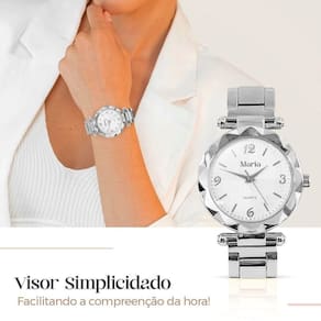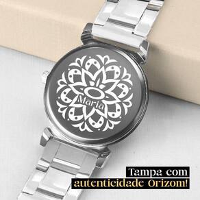- Relógio Feminino Orizom Maria: Relógio analógico com maquinário e pulseira em aço inoxidável de cor prata, proporcionando um visual sofisticado e resistente ao desgaste. O mostrador também na cor prata oferece uma estética clean e elegante. A tampa traseira é blindada e conta com uma arte exclusiva da Orizom, reforçando sua autenticidade e atenção aos detalhes.