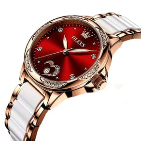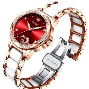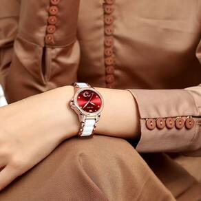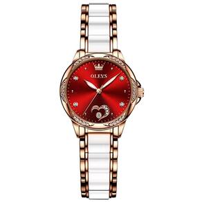 Relógio Feminino Automático de Cerâmica Feminino Design Romantico Aço Inoxidável - Vernelho