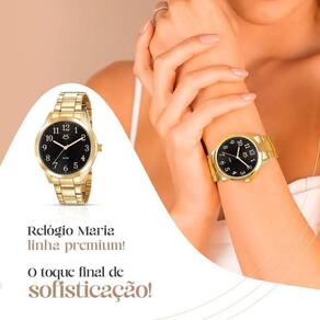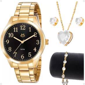 Relogio Feminino Banhado Aço Inox + Brincos + Colar Strass Inoxidável Pulseira Casual Social Moda Surpreenda a Maria da sua vida com este deslumbrante kit de acessórios! Com o Relógio de Pulso Orizom Maria, você vai adicionar um toque de sofisticação e elegância ao pulso dela. O colar banhado dourado com pingente de strass transparente vai dar o toque final em qualquer conjunto, adicionando um brilho sutil e elegante ao pescoço. E para completar, o par de brincos e a pulseira banhados dourados com pingentes de strass transparente vão deixá-la deslumbrante em qualquer ocasião! Aproveite esta oportunidade para mostrar à Maria o quanto ela é especial com este presente ideal. Não perca essa chance de surpreendê-la! Combinando estilo, qualidade e brilho, este kit é um verdadeiro arraso! Garanta o seu agora!