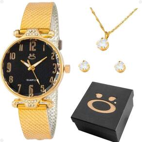 Relogio Feminino Banhado Dourado + Colar Brincos Casual Kit Feminino Orizom Maria - Sofisticação e Exclusividade em Um Só Conjunto Se você procura o presente perfeito ou deseja se mimar com um conjunto único e encantador, este kit premium foi feito para você. Combinando design sofisticado, materiais de alta qualidade e detalhes exclusivos, é ideal para celebrar momentos especiais.