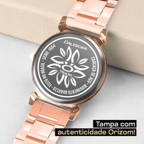 Relógio Feminino Orizom - Modelo Maria - Tipo: Analógico - Material: Aço inoxidável com banho em rosé, proporcionando um brilho luxuoso e duradouro. - Cor do Maquinário: Rosé banhado, com acabamento impecável. - Cor do Mostrador: Rosé banhado, com design sofisticado que realça a feminilidade e exclusividade do modelo. - Tampa: Blindada, com arte exclusiva da flor da Coleção Maria, destacando a originalidade da linha.