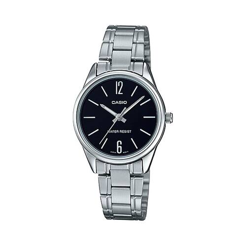 Relógio Feminino Casio Pequeno Prata Com Fundo Preto