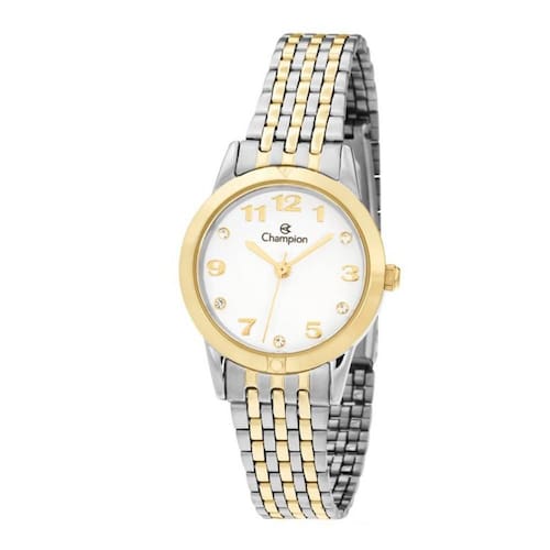 Marca: Champion Referência: CH24866B Gênero: Feminino : 1 Ano em Toda Rede de Assistência Técnica Champion no Brasil Características: Composição do Vidro: Cristal Mineral Material da Caixa: Metal Cor da Caixa: Prata e Dourado Material da Pulseira: Aço Inoxidável Cor da Pulseira: Prata e Dourado Mostrador: Branco com Pedras Medidas: Diâmetro da Caixa: 2,6 cm Espessura da Caixa: 0,9 cm Largura da Pulseira: 1,3 cm Resistência a Água: 50 m / 5atm Pode Lavar as Mãos: Sim Pode Usar em Água Corrente: Sim Pode Usar na Piscina: Não Pode Usar em Mergulho Profundo: Não Acompanha: Manual de Instruções Certificado de Marca: Não Informado Ean: 7891511409498