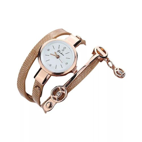 Luxo, Sofisticação e estilo neste lindo relógio, caixa de aço, pulseira de couro e marcadores cravejados com brilhantes. Um olhar clássico, este relógio de pulso de quartzo analógico numerais romanos, especialmente projetado com caixa de metal e pulseira de couro faux. Especialmente projetado para pessoas exigentes e elegantes. Informações técnicas:Fabricante: Amor Lindo Boutique Marca: Amor Lindo BoutiqueAlarme: NãoGênero: FemininoCalendário: NãoCor da pulseira: Bege/ douradoEstilo do Relógio: CasualResistência à água: RespingosMaterial da Pulseira: CouroReferência do Modelo: Cobra Pulseira Couro ClássicoComprimento total cm : 55Peso liq. Aproximado do produto Kg : 0,02 Marca: Amor Lindo