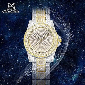 Diamantes de cristal as mulheres observam o mostrador redondo com marcas de hora, fornecem manutenção precisa do tempo. Movimento de quartzo importado, display analógico com mostrador simples, fácil de ler. Estilo de moda luxuoso, muito confortável de usar.