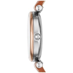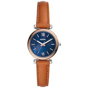 A Fossil sempre foi inspirada pela criatividade e engenhosidade americana. Desde 1984, nós nos esforçamos para trazer uma nova vida à indústria, criando relógios e acessórios modernos e de qualidade divertidos e acessíveis. Conheça a irmãzinha do nosso icônico Carlie. O, mas inegavelmente feminino, ajustamos os detalhes para criar uma peça de luxo. Uma caixa suave e curvilínea é combinada com saliências levemente inclinadas que parecem fazer a pulseira flutuar em seu pulso. Tamanho da caixa Tamanho da banda movimento de quartzo com display analógico de 3 mãos lente de cristal mineral endurecido resiste a arranhões importado Caixa em aço inoxidável prateado e rosa dourado com mostrador em madrepérola azul pulseira de couro marrom para bagagem com fecho de fivela intercambiável com todas as bandas fósseis de Resistente à água até 30m 100 pés resiste a salpicos ou breve imersão em água, mas não é adequado para nadar ou tomar banho