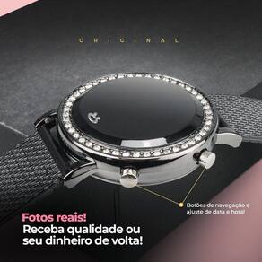 A qualidade deste relógio é garantida, e se você não estiver satisfeito, oferecemos seu dinheiro de volta. Adquira agora este relógio exclusivo e adicione um toque de glamour ao seu dia a dia.