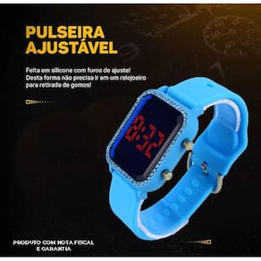 ********** TRABALHAMOS COM PRODUTOS 100% NOVOS ************ Durabilidade, conforto e modernidade!Diversifique seu dia a dia com esse lindo relógio assim combinando seu acessório com sua ocasião Modelo: Led DigitalCategoria: Digital Formato da hora 12hrs ou 24hrsCalendário: Sim Viso Relogio com Strass Zircônias Cronometro : NaoCor da Iluminação: Led Vermelho Ou Branco– Respingos: Sim– Chuva: Sim– Lavar Carro: Nao– Lavar Louça: Nao– Natação: Não– Mergulho: NãoEstilo:Fashion,Social,Casual,Balada,Festa,Dia a Dia , Noite , Fitness , Esportivo, Trabalho , lazer,Para todas as ocasioes.Gênero: Feminino/ masculino, adultoCaracterística da tela : vidroTipo de Fecho: AjustavelDimensoes do relógio (35x40mm)Material da Pulseira: SiliconeLargura da Pulseira: 17mmComprimento Máximo da Pulseira: 22cmAlimentação: Bateria Interna (Inclusa)Peso Líquido: 100gramas