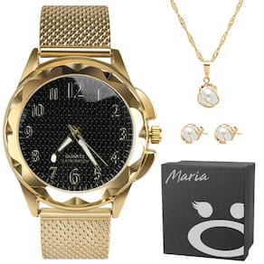 Relogio feminino dourado aço prova dagua + pulseira resistente pulseira ajustavel casual presente Kit Luxo Dourado para Mulheres Elegantes
