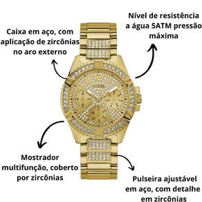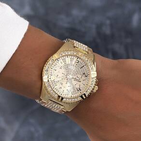 Relógio feminino dourado guess w1156l2Gênero: femininoCor: douradoTipo de movimento: analógicoFormato da caixa: redondaMaterial da caixa: açoMaterial da pulseira: açoMaterial do vidro: cristal mineralComprimento do relógio: 21cmEspessura da caixa: 0,9cmDimensões da caixa: 4,2cmNível de resistência à água: 5atmPulseira ajustável: simCalendário: simCronógrafo: simIluminação noturna: ponteiros com iluminatorGarantia do fabricante: garantia do relógio de 1 ano. medidas aproximadas