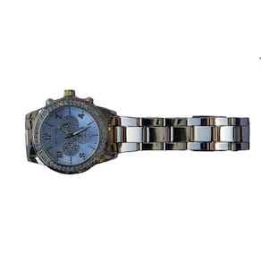 Mostrador com Fundo Dourado, decorado com 3 círculos brilhantes de relevos indefinidos. Especificações Técnicas: Material da Pulseira: Aço Inoxidável de cor Dourada Material da Caixa: Liga de Metal, Mecanismo: Quartzo Resistente a agua, Não é A PROVA D'AGUA.
