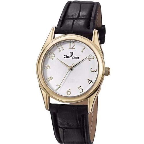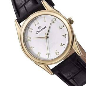 Relógio feminino dourado pulseira de couro 32mm Champion social CH24660B