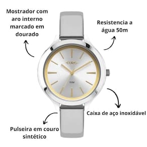 a oficial mix é uma uma empresa especializada em vendas de produtos multimarcas, que desde 2015 encanta os seus clientes, oferecendo produtos de excelente qualidade, , com garantia de fábrica e com preços imbatíveis. Gênero: feminino cor: prata mecanismo: analógico tamanho da caixa: médio material da caixa: aço material da pulseira: aço inoxidável material do vidro: cristal mineral comprimento do relógio: 24cm espessura da caixa: 0,8cm dimensões da caixa: 4,5cm de diâmetro nível de resistência à água:50m pulseira ajustável: sim calendário: não possui cronômetro: não possui função chime: não possui função de aviso de hora cheia garantia do fabricante: garantia do relógio de 1 ano. Produto.