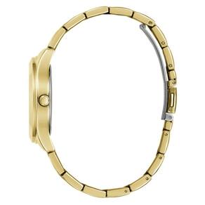 O relógio feminino Guess Tri Plaque GW0675L2 é um modelo oferecido às mulheres que apreciam acessórios elegantes e de moda. O contraste entre o preto profundo e o ouro brilhante cria um efeito visual cativante. O logotipo da marca, colocado no mostrador, significa compromisso com acabamento de qualidade e design moderno. Os componentes do relógio são feitos de aço inoxidável reciclado.