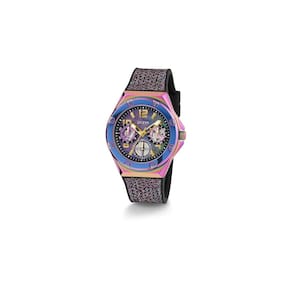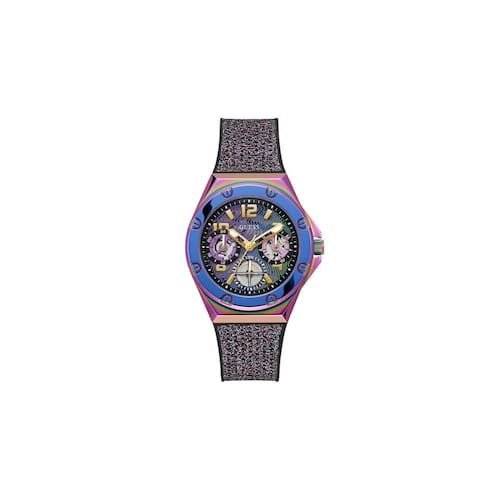 Relógio feminino GUESS de 40 mm — Pulseira multicolorida Caixa iridescente com vários mostradores — pulseira multicolorida de 7,5 polegadas — Caixa iridescente de 40 mm — Mostrador multicolorido — Pulseira de silicone — Mostrador multifuncional