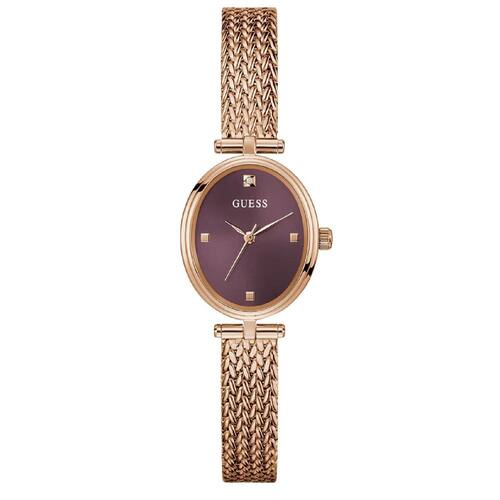 Relógio Feminino Guess Ruby GW0935L3 Rose Projetados para complementar qualquer look, estes modelos delicados oferecem um visual simples e sofisticado para seus relógios. Inspiradas na beleza natural das joias finas, estas peças são sutis, porém marcantes, perfeitas para usar em camadas ou sozinhas. Este modelo apresenta uma caixa oval de 29 mm x 24 mm em aço reciclado polido em tom rose, combinada com uma pulseira de malha texturizada em espinha de peixe com ajuste automático. O mostrador na cor roxa exibe uma pedra às 12 horas. Alimentado por um preciso movimento analógico de quartzo e resistente à água até 30 metros, este design atraente é perfeito para a mulher que aprecia detalhes autênticos de luxo e sofisticação atemporal. Especificações Técnicas Mecanismo: Analógico Quartzo Gênero: Feminino Visor: Roxo Vidro: Cristal mineral Resistente à água: 30m Características: Caixa oval, pulseira de malha, mostrador com pedra no 12h Diâmetro da caixa: 29mm Tipo de fecho: Fivela Simples : 1 ano pela fabricante Guess Marca: Não Informado