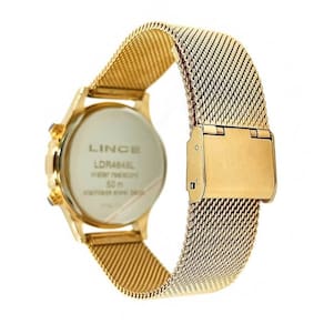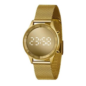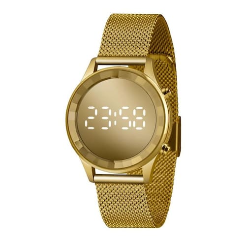 Relógio Feminino Lince Digital Dourado Espelhado LDG4648L CXKX Caixa: Aço Dourado Pulseira: Esteira em Aço Dourado Mostrador: Champanhe Dourado Led Branco Resistência: 5 ATM Visor em Cristal Mineral Movimento Quartz Tamanho da Caixa: 37 mm Espessura da Caixa: 9 mm Tamanho da Pulseira: 21 cm