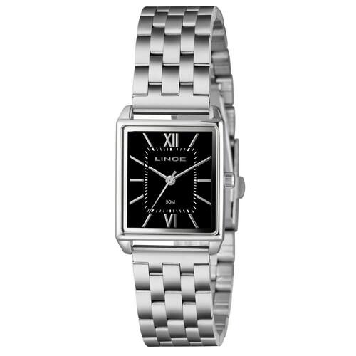 O Relógio Feminino Lince Analógico LQM4824L25 P3SX combina estilo clássico e sofisticação em um design atemporal. Sua caixa retangular prateada destaca-se pelo acabamento elegante, enquanto o mostrador preto com marcadores e numerais romanos em prata reforça a leitura clara e um visual refinado.