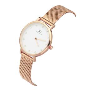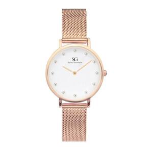 Relógio Feminino Pulseira Rosé Nolita Diamond Rosé Gold 32mm Saint Germain com pulseira de aço inoxidável rosé gold possui 32mm de diâmetro. A caixa é metal rosé gold e o mostrador redondo apresenta pontos de cristais brilhantes dispostos de forma elegante. Seu vidro é com mineral endurecido de alta resistência.