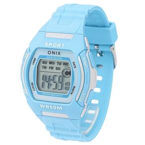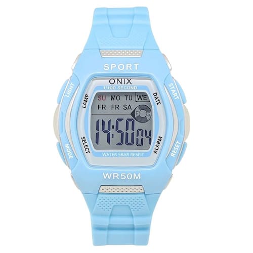 Relógio Feminino Onix Digital IT-697 (9858) AzulMarca: Onix Categoria: Digital Analógico: Não Digital: Sim (1 Horário) Calendário: Sim Despertador: Sim Mostra o Dia da Semana: Sim Mostra o Dia do Mês: Sim Cronômetro: Sim Luz: Sim Cor da Iluminação: VerdeResistente à Água: 5 ATM (Pode ser utilizado para nadar no raso, por pouco tempo submerso) - Respingos: Sim - Chuva: Sim - Lavar Carro: Sim - Lavar Louça: Sim - Natação: Sim - Mergulho: Não Característica do Vidro: Acrílico Tipo de Fecho: Fivela Cor da Caixa: Azul Material da Caixa: Plástico Formato da Caixa: Quadrado Comprimento da Caixa: 44,00 (mm) Largura da Caixa: 38,00 (mm) Espessura da Caixa: 13,00 (mm) Cor da Pulseira: Azul Material da Pulseira: Plástico Largura da Pulseira: 17,50 (mm) Comprimento Máximo da Pulseira: 230,00 (mm) Alimentação: Bateria Interna Peso Líquido: 0,034 Kg Modelo: IT-697 (9858) Cor Predominante: Azul Garantia: 12 MesesConteúdo da Embalagem: 01 Relógio 01 Embalagem 01 Termo de Garantia
