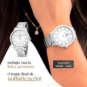 Relogio Feminino Prata + Colar Strass + Caixa + Brincos Kit Especial Orizom Maria para Presentear Quem Você Ama! Surpreenda aquela mulher especial com o kit exclusivo da Orizom Maria!