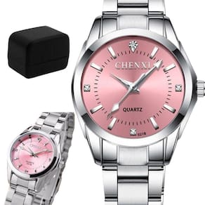Relógio feminino prata rosê pulseira aço luxo + caixa Excelente relógio, ideal para quem busca um modelo versátil.Combinará com qualquer ocasião.Relógio para todas as estações do ano.Perfeito para o dia a dia agregando qualidade e estilo.Lindo para presentear quem você gosta Você está comprando:1 unidade do relógio de pulso chenxi prata e fundo rosaDesign de luxo, discreto e sofisticado.Estilo: social / casualDescrição do mostrador:Material de alta qualidadeExposição: analógicoFormato: redondoEspessura: 9 mmDiâmetro: 28 mmPeso: 46 g Descrição da pulseira do relógio:Fechamento: fecho com travaMaterial: aço inoxidávelComprimento: 20 cmLargura: 1,4 cm Resistente à água - 3atm respingos Produto acompanha caixa.Pulseiras e acessórios da modelo na foto não acompanham o relógio.