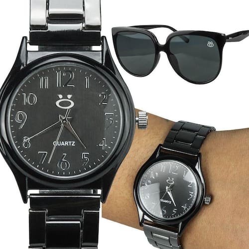 Relogio Feminino Preto Aço Inox + Oculos Sol Proteção Uv Qualidade Premium Presente Social Kit Elegância Feminina - Estilo e Sofisticação em Cada Detalhe - Relógio Feminino Analógico Orizom Maria Todo Preto (Black Piano): Aproveite a qualidade ultra premium do relógio Orizom Maria, todo em aço inoxidável e com uma elegante arte de coração na tampa blindada. Não perca a oportunidade de adquirir esse acessório essencial para qualquer ocasião!