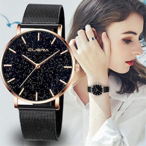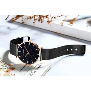 Relógio feminino preto rosê pulseira aço luxo elegante Excelente relógio, ideal para quem busca um modelo versátil. Combinará com qualquer ocasião. Relógio para todas as estações do ano. Perfeito para o dia a dia agregando qualidade e estilo. Lindo para presentear quem você gosta