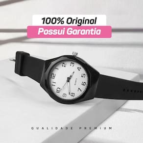 1 Relógio Analógico à Prova D'água - Cor Preto com mostrador Branco, em aço inoxidável, com pulseira em silicone ajustável para conforto e praticidade.