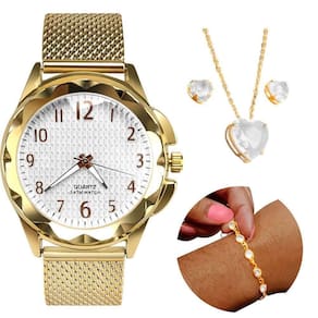 Relogio Feminino Prova Dagua Pulseira Colar Dourado + Pulseira Presente Qualidade Premium Coração