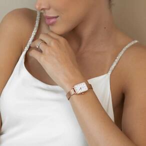 Relógio Feminino Saint Germain Quadrado Square Nolita Rosé Gold com pulseira de aço inoxidável rosé gold possui 20x26mm de diâmetro. A caixa é metal rosé gold e o mostrador branco, vidro com mineral endurecido com alta resistência.