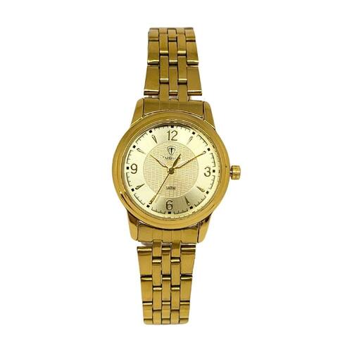 Marca: Tuguir Categoria: Analógico Analógico: Sim (1 Horário) Ponteiros Fluorescentes: Não Digital: Não Calendário: Não Despertador: Não Mostra o Dia da Semana: Não Mostra o Dia do Mês: Não Cronômetro: Não Contador Regressivo: Não Luz: Não Resistente à Água: 5 ATM - Respingos: Sim - Chuva: Sim - Lavar Carro: Sim - Lavar Louça: Sim - Natação: Sim - Mergulho: Não Característica do Vidro: Cristal Mineral Tipo de Fecho: Dobrável com Botão Cor da Caixa: Dourado Material da Caixa: Metal Banho IP Formato da Caixa: Redondo Diâmetro da Caixa: 28,00 (mm) Espessura da Caixa: 8,00 (mm) Cor da Pulseira: Dourado Material da Pulseira: Aço Largura da Pulseira: 13,50 (mm) Comprimento Máximo da Pulseira: 130,00 (mm) Alimentação: Bateria Interna Peso Líquido: 0,050 Kg Modelo: TG187 Cor Predominante: Dourado Garantia: 12 Meses