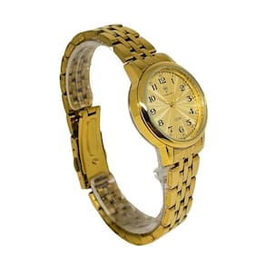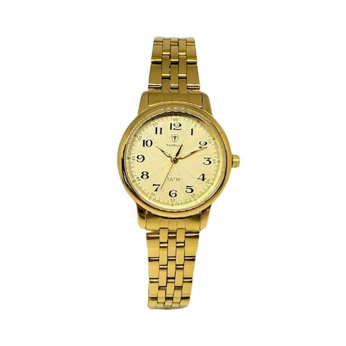 Marca: Tuguir Categoria: Analógico Analógico: Sim (1 Horário) Ponteiros Fluorescentes: Não Digital: Não Calendário: Não Despertador: Não Mostra o Dia da Semana: Não Mostra o Dia do Mês: Não Cronômetro: Não Contador Regressivo: Não Luz: Não Resistente à Água: 5 ATM - Respingos: Sim - Chuva: Sim - Lavar Carro: Sim - Lavar Louça: Sim - Natação: Sim - Mergulho: Não Característica do Vidro: Cristal Mineral Tipo de Fecho: Dobrável com Botão Cor da Caixa: Dourado Material da Caixa: Metal Banho IP Formato da Caixa: Redondo Diâmetro da Caixa: 30,00 (mm) Espessura da Caixa: 9,00 (mm) Cor da Pulseira: Dourado Material da Pulseira: Aço Largura da Pulseira: 12,00 (mm) Comprimento Máximo da Pulseira: 125,00 (mm) Alimentação: Selecione Peso Líquido: 0,060 Kg Modelo: TG228 Cor Predominante: Dourado Garantia: 12 Meses