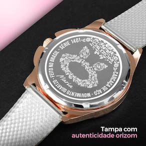 A Caixa Premium Orizom Maria é a maneira perfeita de presentear, proporcionando uma apresentação elegante e segura para o relógio e acessórios.