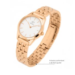 O Mini Pietra é o relógio perfeito para quem busca elegância em cada detalhe. Com design minimalista e dois ponteiros, ele une delicadeza e estilo em uma peça feminina e atemporal. Sua caixa de 24 mm com fundo branco traz leveza ao visual, enquanto a pulseira de elos gold rose adiciona um toque de brilho e sofisticação. Pequeno no tamanho, mas gigante na presença. Ideal para mulheres que apreciam acessórios discretos, modernos e cheios de personalidade.