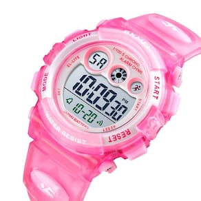Relógio Feminino Skmei Digital 1451 - Rosa Relógio Feminino Skmei Digital 1451 - Rosa Marca: Skmei Categoria: Digital Analógico: Não Digital: Sim (1 Horário) Calendário: Sim Despertador: Sim Mostra o Dia da Semana: Sim Mostra o Dia do Mês: Sim Cronômetro: Sim Contador Regressivo: Não Luz: Sim Cor da Iluminação: Colorido Resistente à Água: 5 ATM (Pode ser usado para nadar no raso, por pouco tempo submerso) - Respingos: Sim - Chuva: Sim - Lavar Carro: Sim - Lavar Louça: Sim - Natação: Sim - Mergulho: Não Característica do Vidro: Acrílico Tipo de Fecho: Fivela Cor da Caixa: Rosa Material da Caixa: Plástico Formato da Caixa: Redondo Diâmetro da Caixa: 37,60 (mm) Espessura da Caixa: 14,00 (mm) Cor da Pulseira: Rosa Material da Pulseira: Plástico Largura da Pulseira: 15,60 (mm) Comprimento Máximo da Pulseira: 210,00 (mm) Alimentação: Bateria Interna Peso Líquido: 0,033 Kg Modelo: 1451 Cor Predominante: Rosa Garantia: 12 Meses Conteúdo da Embalagem: 01 Relógio 01 Embalagem 01 Termo de Garantia