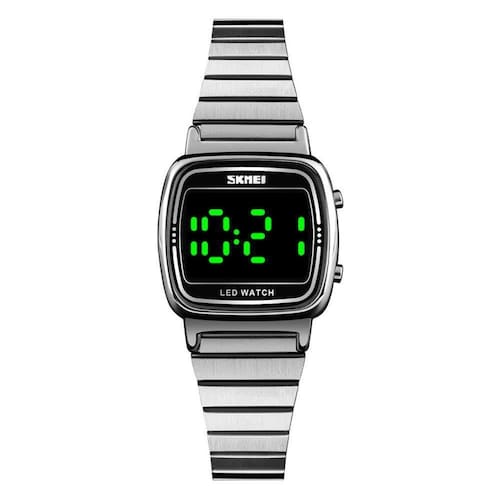 Relógio Feminino Skmei Digital 1543 - Prata Relógio Feminino Skmei Digital 1543 - Prata Marca: Skmei Categoria: Digital Analógico: Não Digital: Sim (1 Horário) Calendário: Não Despertador: Não Mostra o Dia da Semana: Sim Mostra o Dia do Mês: Sim Cronômetro: Não Contador Regressivo: Não Luz: Sim Cor da Iluminação: Verde Resistente à Água: 3 ATM (Resiste a imersões breves) - Respingos: Sim - Chuva: Sim - Lavar Carro: Sim - Lavar Louça: Sim - Natação: Não - Mergulho: Não Característica do Vidro: Acrílico Tipo de Fecho: Gancho Cor da Caixa: Prata Material da Caixa: Metal (Alloy) Formato da Caixa: Quadrado Comprimento da Caixa: 25,00 (mm) Largura da Caixa: 25,00 (mm) Espessura da Caixa: 9,00 (mm) Cor da Pulseira: Prata Material da Pulseira: Metal Largura da Pulseira: 10,00 (mm) Comprimento Máximo da Pulseira: 210,00 (mm) Alimentação: Bateria Interna Peso Líquido: 0,041 Kg Modelo: 1543 Cor Predominante: Prata Garantia: 12 Meses