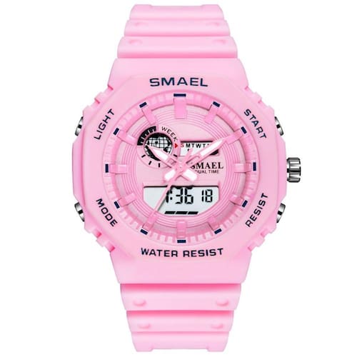 Relógio Feminino Smael AnaDigi 8037 Rosa Marca: Smael Categoria: AnaDigi ógico: Sim 1 Horário Ponteiros Fluorescentes: Sim Digital: Sim 1 Horário Calendário: Sim Despertador: Sim Mostra o Dia da Semana: Sim Mostra o Dia do Mês: Sim Cronômetro: Sim Luz: Sim Cor da Iluminação: Verde Resistente à Água: 5 ATM Pode ser para nadar no raso, por pouco tempo submerso - Respingos: Sim - Chuva: Sim - Lavar Carro: Sim - Lavar Louça: Sim - Natação: Sim - Mergulho: Não Característica do Vidro: Acrílico Tipo de Fecho: Fivela Cor da Caixa: Rosa Material da Caixa: Plástico Formato da Caixa: Quadrado Comprimento da Caixa: 40,00 mm Largura da Caixa: 40,00 mm Espessura da Caixa: 15,50 mm Cor da Pulseira: Rosa Material da Pulseira: Silicone Largura da Pulseira: 20,00 mm Comprimento Máximo da Pulseira: 250,00 mm Alimentação: Bateria Interna Peso Líquido: 0,050 Kg Modelo: 8037 Cor Predominante: Rosa : 12 Meses Conteúdo da Embalagem: 01 Relógio 01 Embalagem 01 Termo de Marca: Não Informado