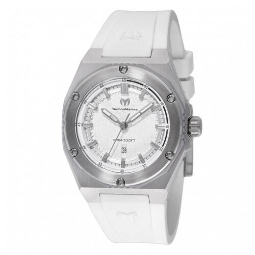 Este belo relógio TechnoMarine Coral Legacy apresenta um movimento preciso de Quartzo, em uma caixa de aço prateada. Seu mostrador exibe uma elegante cor prateada, protegido por um cristal mineral altamente resistente. Este acessório é complementado por uma pulseira branca e oferece resistência à água de até 100 metros. Cada peça é construída para os corajosos de coração, sendo um exemplo versátil de resistência, estabelecendo um padrão para enfrentar as atividades mais aventureiras. Em algumas situações, as cores nas imagens podem variar ligeiramente do produto real.
