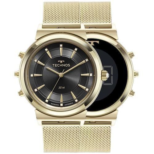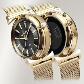 Características: Relógio Technos Curvas Feminino Signature Dourado 9T33AH/1P Relógio Technos feminino Coleção Curvas. Edição limitada em homenagem a Oscar Niemeyer, ícone da arquitetura mundial, um brasileiro que sempre esteve à frente do tempo. Com construção reversível inovadora, eles possuem uma caixa com dois lados, sendo um analógico e outro digital, basta puxar a pulseira para girar a caixa. Modelo com caixa tamanho 4,0cm e pulseira de aço mesh em banho dourado.