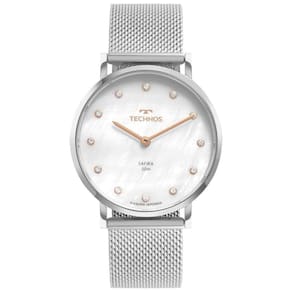 Relógio Feminino Technos Safira Analógico Prata 2025Ltt/1BO Relógio é um dos acessórios mais presentes em todas as fases da nossa vida, mesmo com inúmeros dispositivos modernos que mostram as horas, o clássico relógio para pulso não perdeu seu charme e é uma ótima opção para complementar o visual. O Relógio Feminino Technos Safira Analógico Prata 2025Ltt/1B é perfeito para uso pessoal ou para presentear alguém especial em uma data comemorativa, sendo um presente único, de ótimo gosto, elegância e muita praticidade.Produzido com materiais resistentes e de qualidade, a peça reúne sofisticação e estilo em um único item. A escolha perfeita para mulheres elegantes que gostam de ter um acessório incrível para complementar o look em qualquer ocasião. Especificações técnicasTipoAnalógicoBanhoPrataGêneroFemininoCor da caixaPrataMaterial da pulseiraAçoFormatoRedondoCor do mostradorMadrepérolaGarantia12 mesesCor da pulseiraPrataLargura da caixa (cm)3,5Resistência à água5 atm Ean: 7891530723780