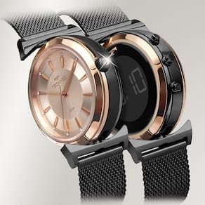 Tipo: Analogico/Digital Caixa: Aço Cor da caixa: Preto Material da pulseira: Aço Cor da Pulseira: Preto Formato: Redondo Cor do mostrador: Rosé Garantia: 12 meses Largura da caixa: 40 mm Espessura da caixa: 12 mm Resistência à água: 5 ATM