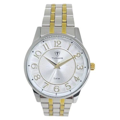 Relógio Feminino Tuguir ógico 2134 Prata e Dourado Relógio Feminino Tuguir ógico 2134 Prata e Dourado Marca: Tuguir Categoria: ógico ógico: Sim 1 Horário Ponteiros Fluorescentes: Selecione Digital: Não Luz: Selecione Resistente à Água: 5 ATM Pode ser para nadar no raso, por pouco tempo submerso - Respingos: Sim - Chuva: Sim - Lavar Carro: Sim - Lavar Louça: Sim - Natação: Sim - Mergulho: Não Característica do Vidro: Cristal Mineral Tipo de Fecho: Dobrável com Botão Cor da Caixa: Prata Material da Caixa: Metal Banho IP Formato da Caixa: Redondo Diâmetro da Caixa: 39,00 mm Espessura da Caixa: 11,00 mm Cor da Pulseira: Prata Material da Pulseira: Aço Largura da Pulseira: 17,50 mm Comprimento Máximo da Pulseira: 270,00 mm Alimentação: Bateria Interna Peso Líquido: 0,080 Kg Modelo: 2134 Cor Predominante: Prata Cor Diferencial: Dourado : 12 Meses Conteúdo da Embalagem: 01 Relógio 01 Embalagem 01 Termo de Marca: Não Informado