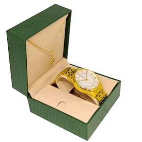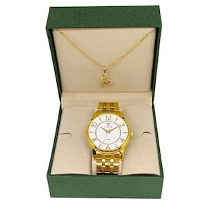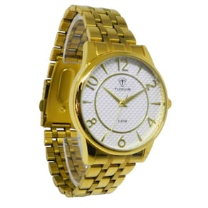 Relógio Feminino Tuguir Analógico 2135 Dourado e BrancoMarca: Tuguir Categoria: Analógico Analógico: Sim (1 Horário) Ponteiros Fluorescentes: Selecione Digital: Não Luz: SelecioneResistente à Água: 5 ATM (Pode ser utilizado para nadar no raso, por pouco tempo submerso) - Respingos: Sim - Chuva: Sim - Lavar Carro: Sim - Lavar Louça: Sim - Natação: Sim - Mergulho: Não Característica do Vidro: Cristal Mineral Tipo de Fecho: Dobrável com Botão Cor da Caixa: Dourado Material da Caixa: Metal Banho IP Formato da Caixa: Redondo Diâmetro da Caixa: 39,00 (mm) Espessura da Caixa: 11,00 (mm) Cor da Pulseira: Dourado Material da Pulseira: Aço Largura da Pulseira: 17,50 (mm) Comprimento Máximo da Pulseira: 270,00 (mm) Alimentação: Bateria Interna Peso Líquido: 0,080 Kg Modelo: 2135 Cor Predominante: Dourado Cor Diferencial: Branco Garantia: 12 MesesConteúdo da Embalagem: 01 Relógio 01 Embalagem 01 Termo de Garantia