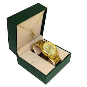 Relógio Feminino Tuguir Analógico 2138 Dourado Relógio Feminino Tuguir Analógico 2138 Dourado Marca: Tuguir Categoria: Analógico Analógico: Sim 1 Horário Ponteiros Fluorescentes: Não Digital: Não Luz: Selecione Resistente à Água: 5 ATM Pode ser Utilizado para nadar no raso, por pouco tempo submerso - Respingos: Sim - Chuva: Sim - Lavar Carro: Sim - Lavar Louça: Sim - Natação: Sim - Mergulho: Não Característica do Vidro: Cristal Mineral Tipo de Fecho: Dobrável com Botão Cor da Caixa: Dourado Material da Caixa: Metal Banho IP Formato da Caixa: Redondo Diâmetro da Caixa: 39,00 mm Espessura da Caixa: 11,00 mm Cor da Pulseira: Dourado Material da Pulseira: Aço Largura da Pulseira: 17,50 mm Comprimento Máximo da Pulseira: 270,00 mm Alimentação: Bateria Interna Peso Líquido: 0,080 Kg Modelo: 2138 Cor Predominante: Dourado : 12 Meses Conteúdo da Embalagem: 01 Relógio 01 Embalagem 01 Termo de